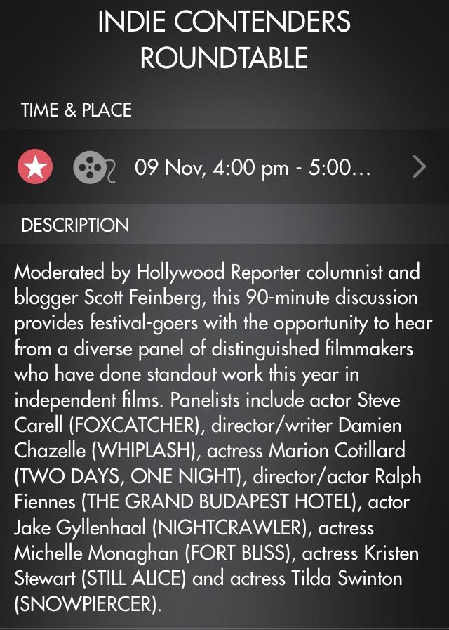 The Hollywood Reporter - "8 aspirantes al Oscar aparecerá en THR 'Indie Contenders Roundtable' - Un ecléctico grupo de ocho cineastas ilustres que hicieron celebres trabajos en películas independientes en 2014 aparecerán en el inaugural 'Indie Contenders Roundtable' del AFI Fest, presentado por The Hollywood Reporter y moderado por su servidor, Scott Feinberg, el 9 de noviembre en Hollywood.