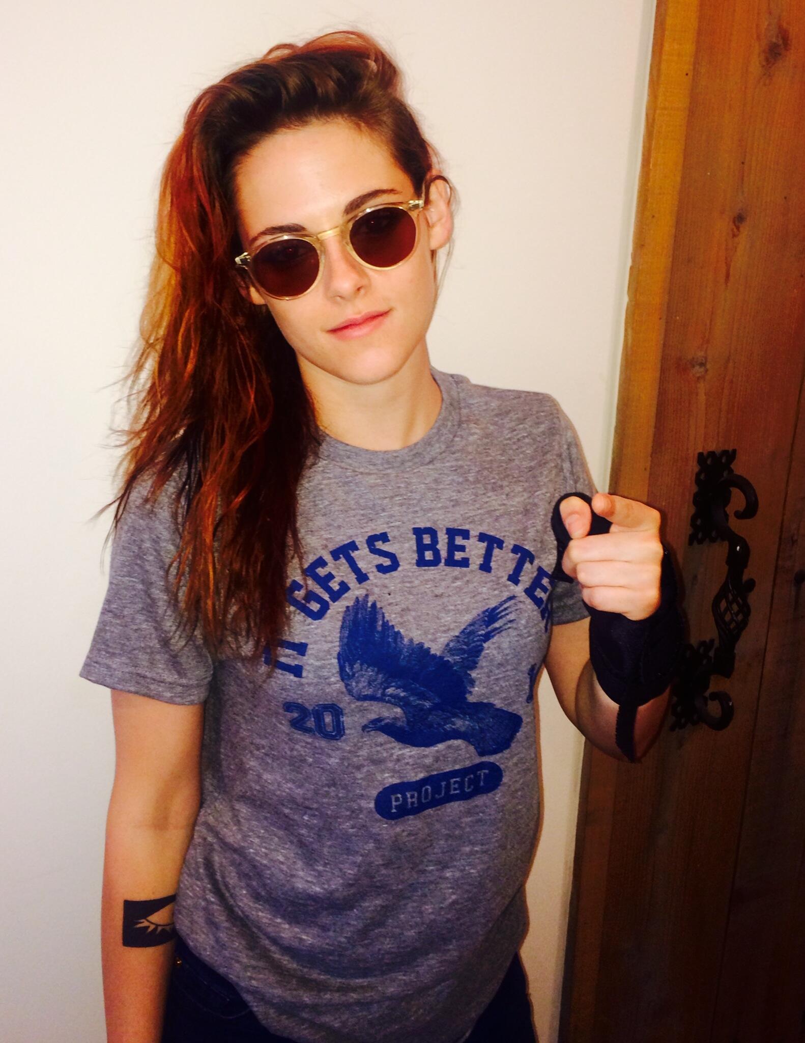 It Gets Better Project "Kristen Stewart, usando nuestra camisa de It Gets Better Proyect, Gracias por su participación en una causa que ella realmente cree y apoya." :)